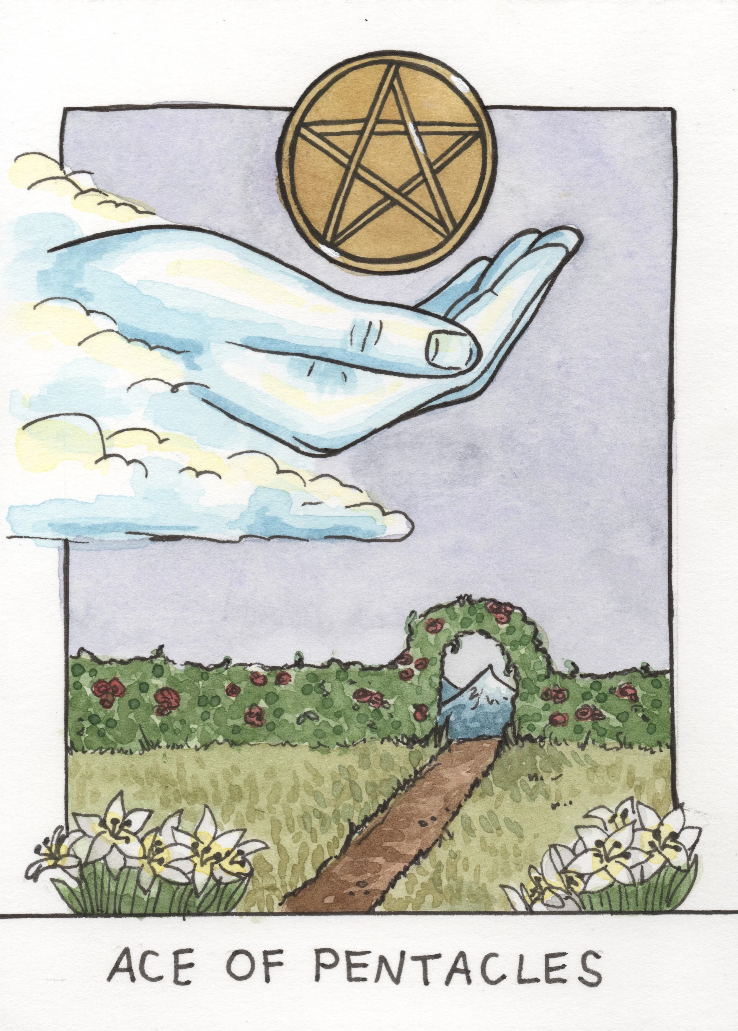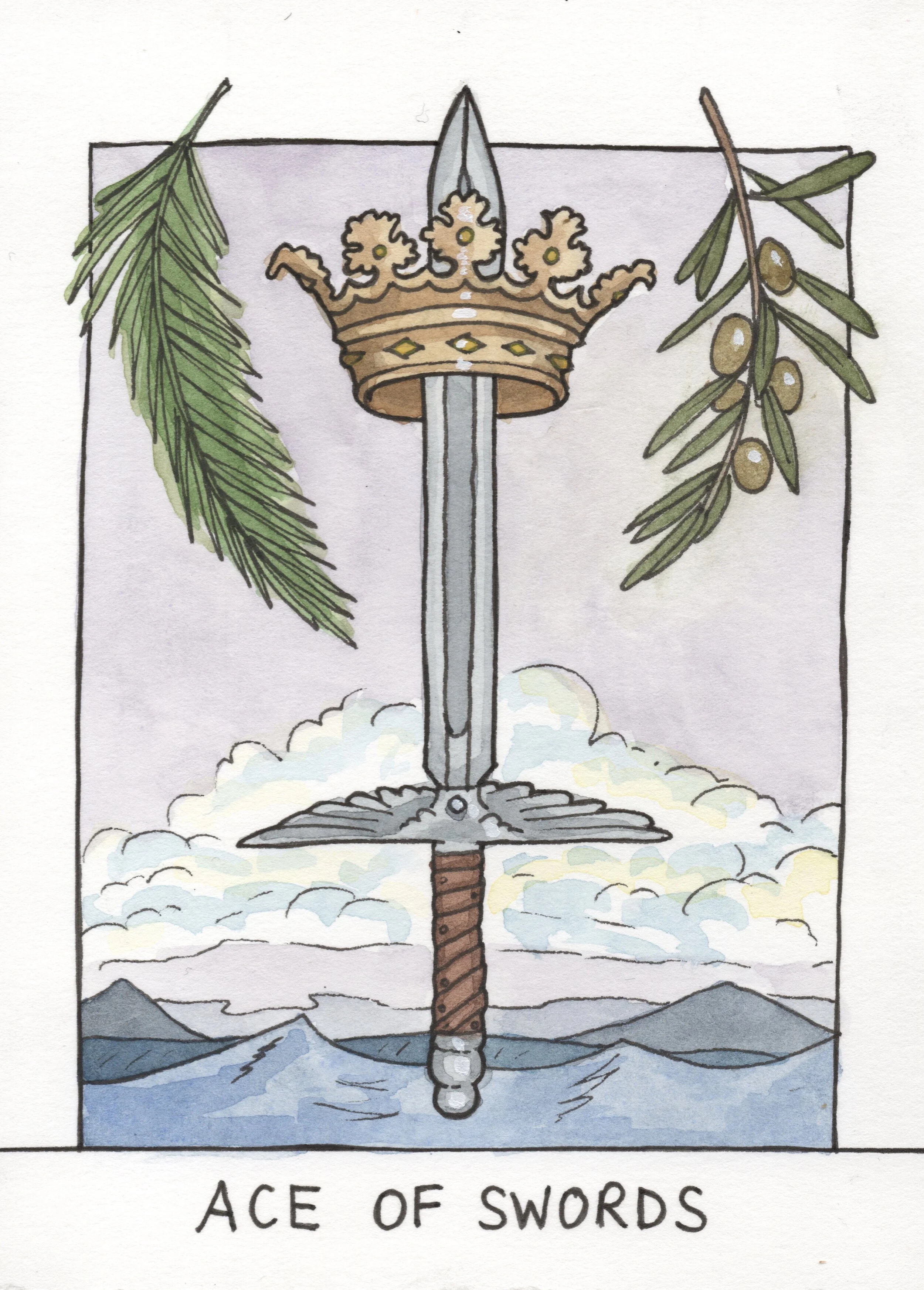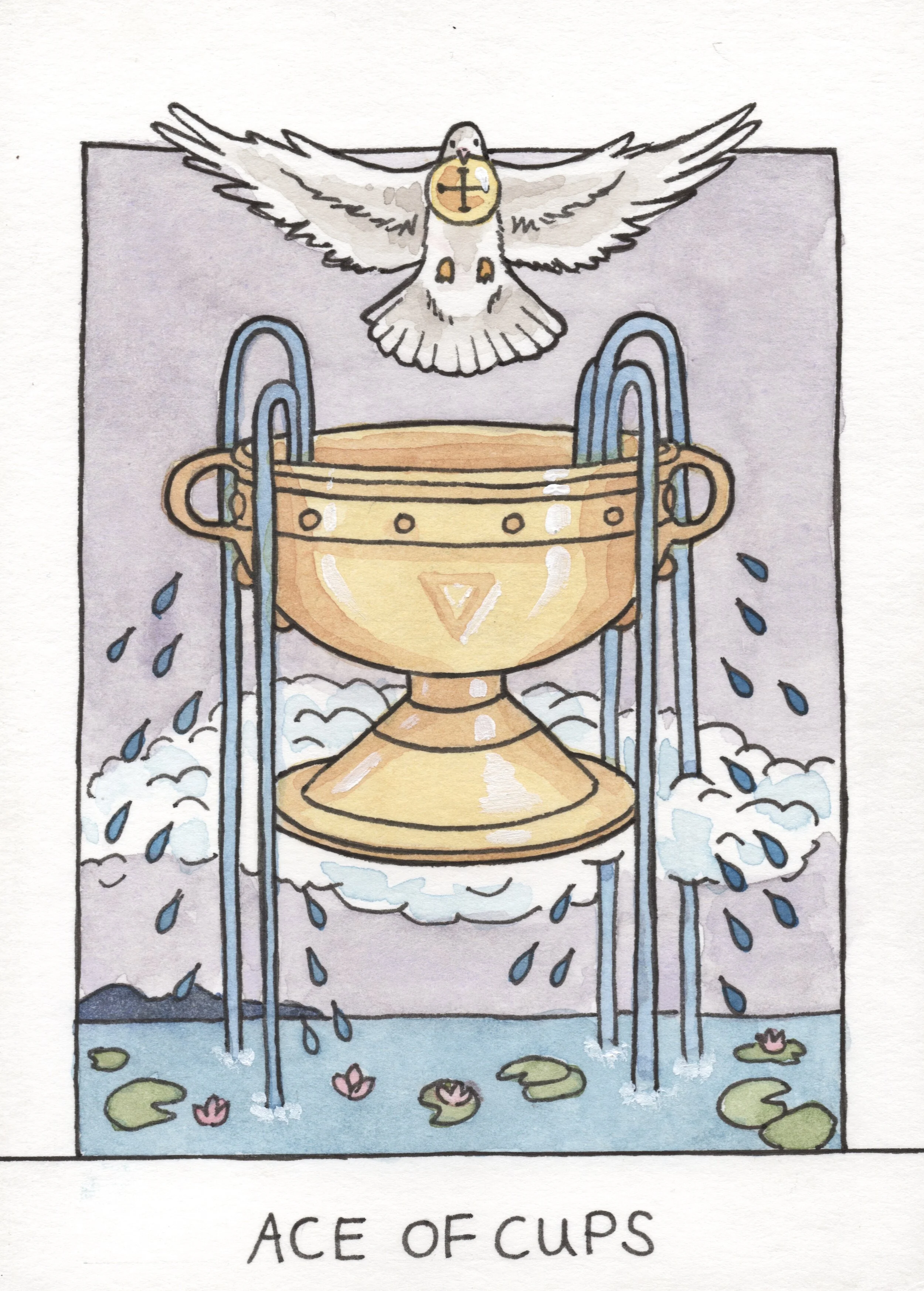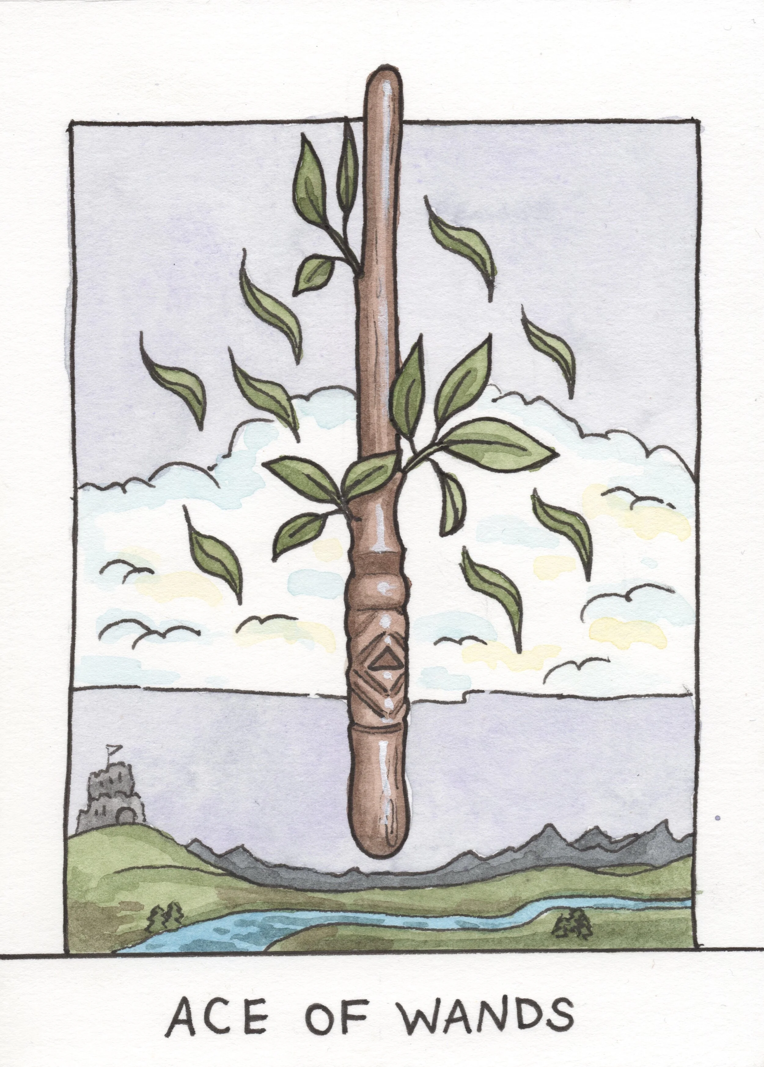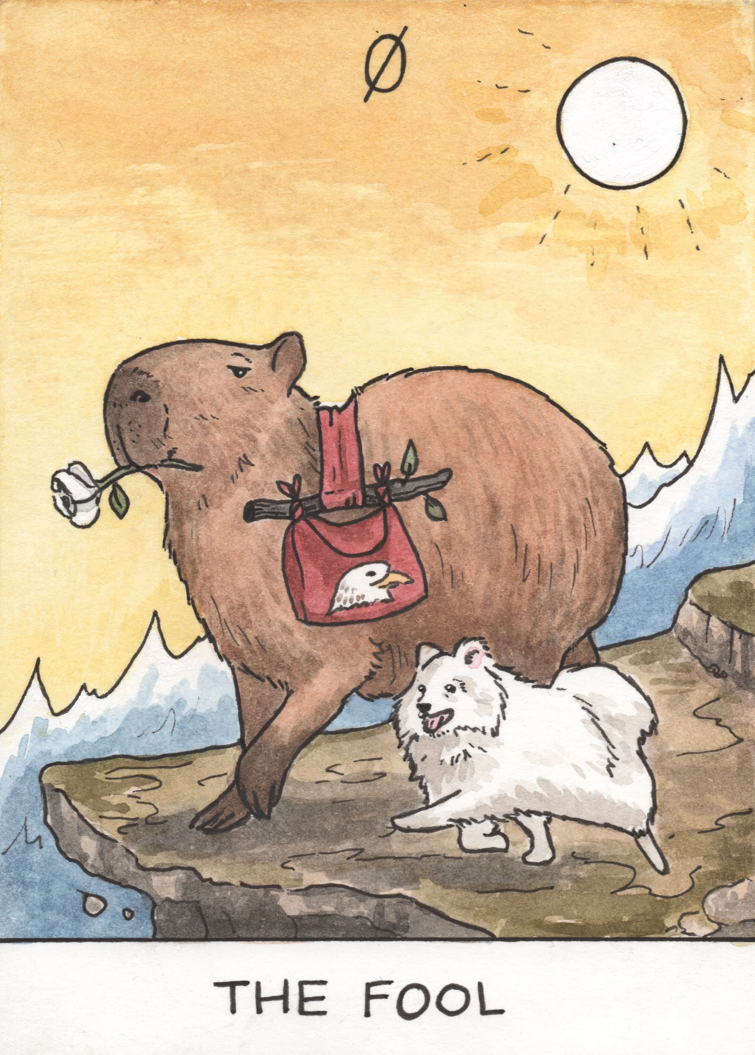 I had known for many years that I wanted to illustrate my own Tarot deck, both as a way to push myself as an artist as well as to grow mentally and spiritually through my studies. In the spring of 2020, with the outside world feeling far away and confusing, it seemed the perfect time to fully commit myself wholly to this project; to explore the inner realms of understanding as well as gain perspective on the reality of my physical situation. This deck has been the culmination of many hours, days, weeks, months, and years of work. To begin, I cut and labeled each card and then chose randomly one card at a time to study and illustrate. Once all the illustrations were complete, I watercolored each image starting with the Major Arcana and then proceeded chronologically through the Wands, Cups, Swords, and Pentacles. I based the majority of my illustrations off of Pamela Colman Smith’s artwork in the Rider-Waite deck and researched the meaning behind the images and symbolism primarily through Rachel Pollack’s book Seventy Eight Degrees of Wisdom. I wanted the images I created to have an intuitive symbology to those already familiar with the Tarot as well as be a universal stepping stone for those wishing to delve deeper into the study of the images. I chose to include animals rather than human forms in the majority of my deck as a way to both add an extra layer of metaphor, as well as provide an accessible entry point so that any person may be able to see themselves reflected in the narratives of the cards. Though I had originally intended to create the deck for just myself to use and study, the lessons I have learned and the magic I have discovered felt too exciting not to share. It is my hope that this illustrated Tarot can serve others as a means of discovering deeper knowledge of self and those around them, provide assistance through divination/spiritual guidance, or simply entertain as a colorful, whimsical, storybook journey through the cards.